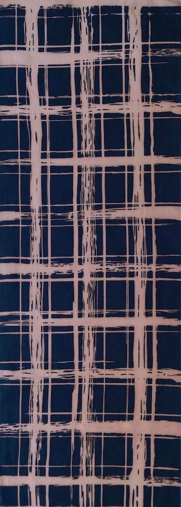 筆で描いたようなかすれと太さの揺らぎが、格子柄に新しい表情をもたらしています。